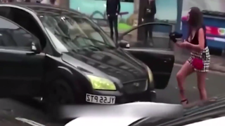 路怒女司机脱下高跟鞋砸车,没想到后车男子更疯狂