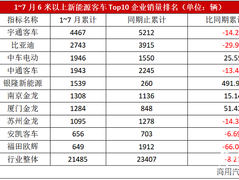7月新能源客车销量观察:宇通第一,中车首登第二!
