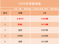 不加定语,小米YU7夺得1月乘用车销量冠军,Model Y跌落20名