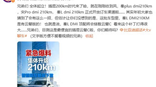 有博主爆料:比亚迪多款插混车型纯电续航来到210km。 秦PLUS、宋PRO、秦L 210公里插混版已经开放订车渠道了,此外秦L还有云辇版(那就是最便宜的云辇C车型),海洋网应该也会同步。 按照比亚迪的常规操作,应该会继续采用“加量不加价”的策略。 此外,大电池长续航会成为明年的主要发力方向,感兴趣的朋友可以观望一下。