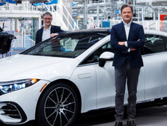 在上海车展全球首发的奔驰EQS已在梅赛德斯-奔驰辛德芬根工厂正式下线投产。作为奔驰EQ家族的旗舰级车型,定位于豪华大型纯电动轿车的奔驰EQS成为了全新EVA平台打造的首款车型,并配备了全新MBUX Hyperscreen系统,续航方面,CLTC新国标工况测试续航里程可达800公里,并将于年内上市发售。造型方面,奔驰EQS融入了EQ家族最新设计元素,整体外观运动感十足,尤其是溜背造型设计与CLS车型有几分相似。前灯组由家族标志性的贯穿式日行灯带串联,其中的三个光点与全新S级轿车一脉相承。此外,新车配备智能数字大灯,以多达130万片微镜片提供了出众的照明效果,照明分辨率高达260万像素。 内饰部分,奔驰EQS内饰提供两种设计风格供选择。一种是搭载MBUX Hyperscreen系统的贯穿式OLED大屏风格,另一种则为传统的纵向布局。其中MBUX Hyperscreen系统的贯穿式OLED大屏由非规则的曲面玻璃打造,集成了三块显示屏,科技感十足。此外,MBUX Hyperscreen系统拥有8核CPU、24GB内存、46.6GB/s带宽的硬件,且常用功能无需滚屏和翻页就可以操作,非常便捷。动力方面,奔驰EQS将推出EQS 450、EQS 580两款车型,最大功率分别为245kW(333马力)和385kW(523马力),峰值扭矩分别为568Nm和855Nm。