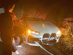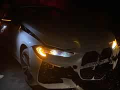 这应该算是宝马新4系的国内首撞了吧? 目测这是一台430i M运动曜夜版车型,从图中看事故车的损坏多集中在车头部位。格栅、包围、机盖都出现了不同程度的破坏,连世人最爱的“蓝天白云”标也掉落了。 新车还未上牌,就发生了事故,预计没有个小几万的维修费用是恢复不了新车的模样了。
