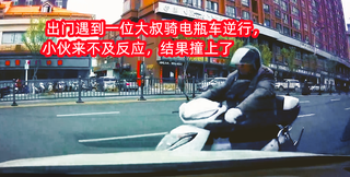 出门遇到一位大叔骑电瓶车逆行,小伙来不及反应,结果撞上了