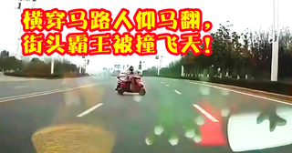 横穿马路人仰马翻,街头霸王被撞飞天!