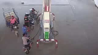 小伙到加油站加油,下一秒忽然发觉不对劲,监控拍下惊魂一幕