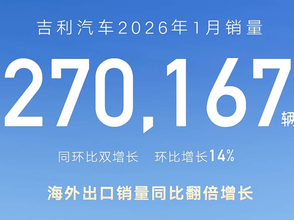 吉利汽车1月销量27万辆,海外销量翻倍增长