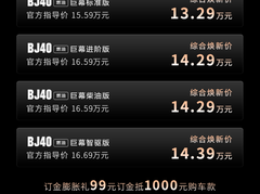 距离BJ40探险家上市没几天,北京越野一口气又上了3款车,这3个车也是BJ40家族的,一个贵的、一个便宜的、一个特殊的。 有点像很多拉面馆的套餐,正常拉面、精品套餐、烤串+大腰子精品套餐,类似这种。 BJ40燃油巨幕版官方指导价15.59—16.69万元,算上权益和补贴低到了13.29万元,它的特点就是“同级唯一双15.6寸双联屏”,此外还有博格华纳TOD智能四驱、8155芯片、CarPlay、四摄像头行车记录仪等等。 这个版本主打一个量大实惠管饱,想要的都有。 BJ40增程悦野飞行版开启预售,预售价24.78万元。最大的特点是有一个“越野专用无人机”,支持自动跟拍、智能运镜、AI一键成片等等,和之前比亚迪等新车思路是一样的。 “烤串+大腰子精品套餐”值得是BJ40增程赤兔版,特点是“官方改装、一步到位”,内嵌式金属防滚架、一体式前后杠、铝合金爬梯、涉水喉、氮气减震器、全地形轮胎和三把差速锁、拖车资质等等,大部分后期改装项目原创都做好了,省的素车自己改、验车很麻烦。当然价格也贵,官方指导价27.98万元!