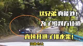这兄弟能处,为了给对方让道,直接将车开进了排水渠!