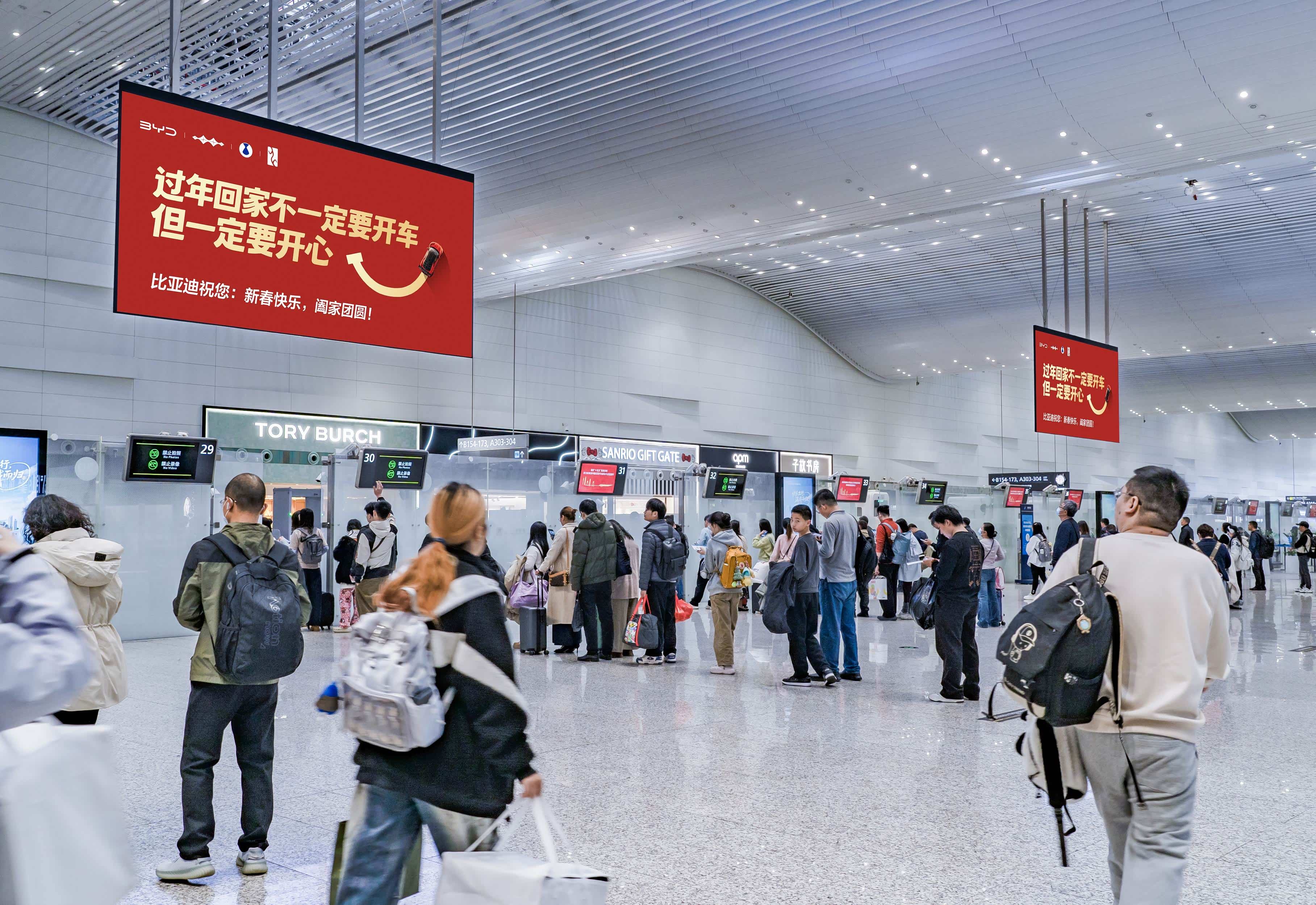 今年春节,比亚迪在机场投放的一则广告火了,文案只有简单一句:“过年回家不一定要开车,但一定要开心”。 作为一个汽车品牌,春节往往是“抢销量”的黄金节点,大多数车企都在强调续航、空间、自驾体面。比亚迪却反其道行之,主动劝人“不一定开车”。这种反套路,恰恰是这次传播最高明的破局点。 这则广告的高明之处,在于放下了商业功利心,回归对人本身的关怀。它洞察到春运归乡的本质不是“炫耀交通工具”,而是追寻团聚的治愈。在飞机、高铁、自驾交织的归途中,比亚迪不再扮演“产品推销员”,而是化身为懂得共情的“出行伙伴”。它通过“不一定要开车”的退让,反而构建了更有温度的品牌形象。 路途只是过程,团圆才是答案。无论以何种方式回家,愿大家都能新年常开心。#过年回家不一定要开车但一定要开心#