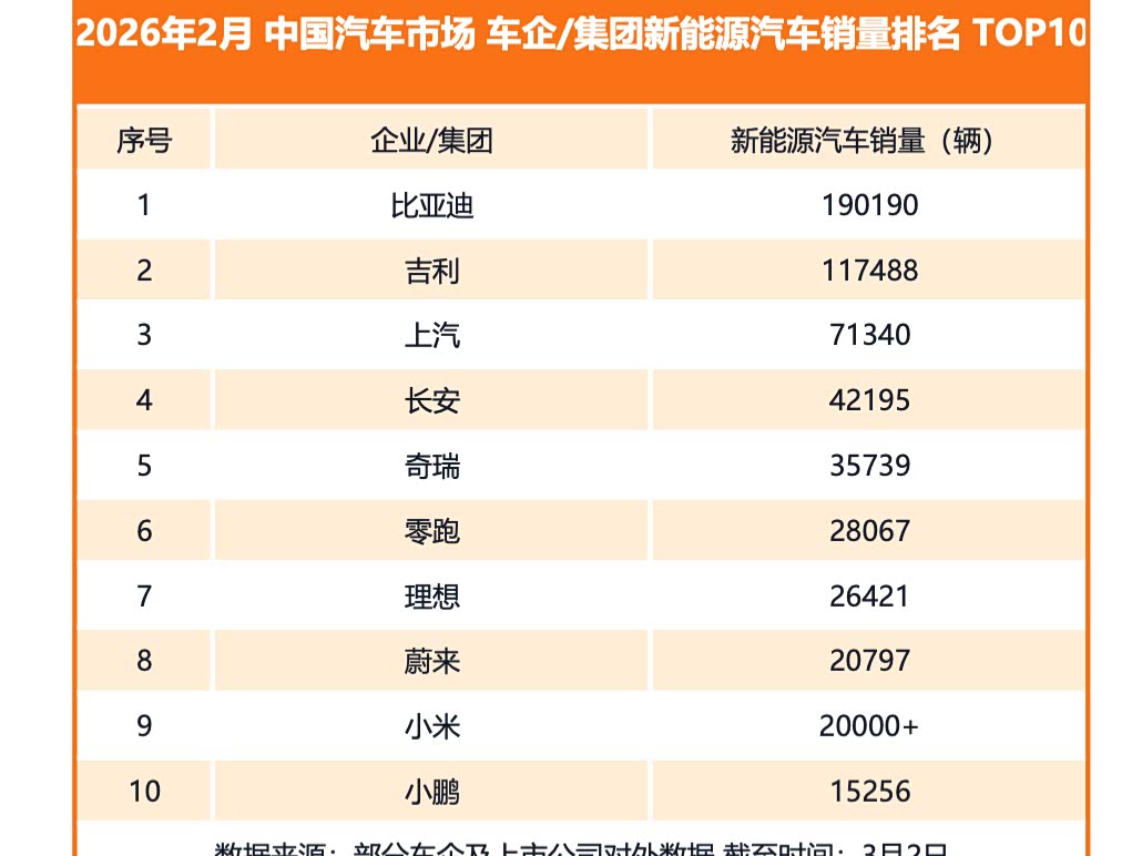 比亚迪再夺2月新能源销冠,行业分化趋势延续