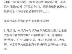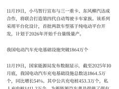 #汽车 #掌上汽车 小米汽车50万辆下线 创行业最快纪录 11月20日,小米汽车第50万辆整车在北京亦庄超级工厂正式下线,雷军亲自见证了这一里程碑时刻。从2024年3月首款车型SU7发布到达成50万辆产能,小米汽车仅用602天(不足20个月),刷新全球新能源车企最快纪录(传统车企通常需3年以上)。 东风汽车与华为联合发布"X境"新品牌 11月20日,东风汽车与华为在华为乾昆生态大会上正式发布合作品牌"X境"(内部代号DH)。这是继宝骏"华境"、广汽"启境"之后,华为"乾昆系"第三大品牌,标志着华为在智能汽车领域的生态布局进一步完善。 2025新质汽车发展峰会在广州启幕 11月20日,2025新质汽车发展峰会暨第十一届"金轱辘奖"颁奖盛典在广州举行。乘联分会发布《十五五国内外汽车消费与政策展望》报告,预测2035年中国汽车产销规模将达4000万辆,新能源渗透率超85%。峰会上,比亚迪获"年度科技创新企业"奖,多家车企高管围绕"反内卷"与"价值战"展开讨论,一致认为中国汽车产业正从价格竞争向技术与品质竞争转型。 小马智行第四代自动驾驶卡车明年量产 11月19日,小马智行宣布与三一重卡、东风柳汽达成合作,将联合打造第四代自动驾驶卡车家族。该系列采用平台化设计,