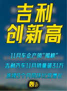 11月车企产销“揭榜” 吉利汽车11月销量破31万