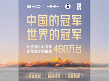 比亚迪2025年销量超460万辆,包揽中外销冠续写传奇