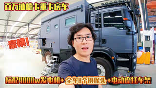 汕德卡重卡房车,标配4000w发电机,全车8个摄像头,电动摩托车架