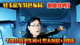 轻卡房车特色布局,干湿分离卫生间+L型大厨房+3张床,来看看