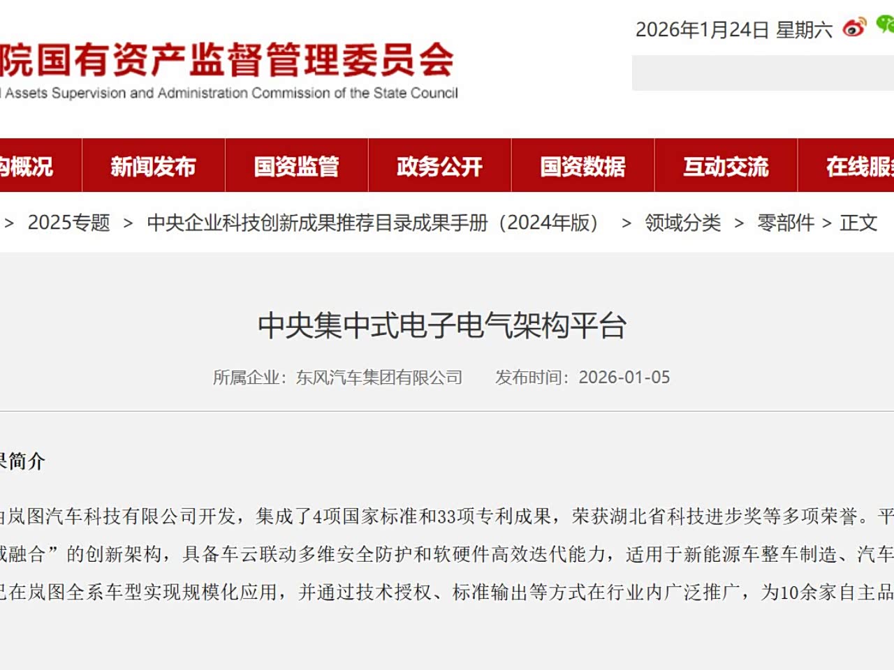 岚图中央集中式电子电气架构获国资委力荐