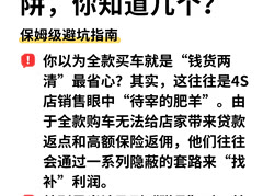 你以为全款买车就是“钱货两清”最省心?其实,这往往是4S店销售眼中“待宰的肥羊”。由于全款购车无法给店家带来贷款返点和高额保险返佣,他们往往会通过一系列隐蔽的套路来“找补”利润。 特别是当涉及到“赠品”时,其中的猫腻最多。别担心,我为你拆解全款买车最常见的五大陷阱,帮你守住钱包。