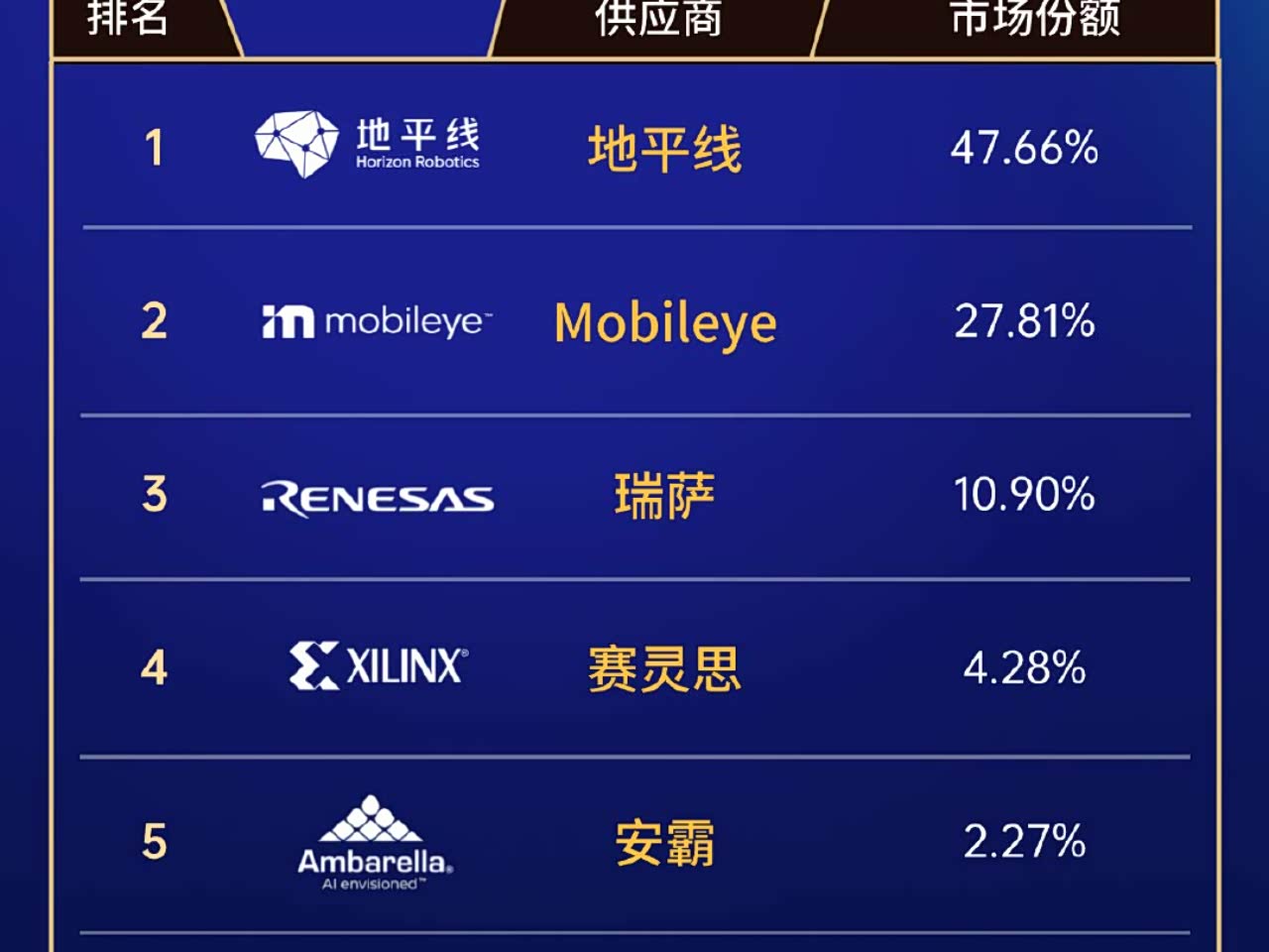 智驾芯片市场榜单!地平线持续霸榜低阶,高阶增速杀入行业前三