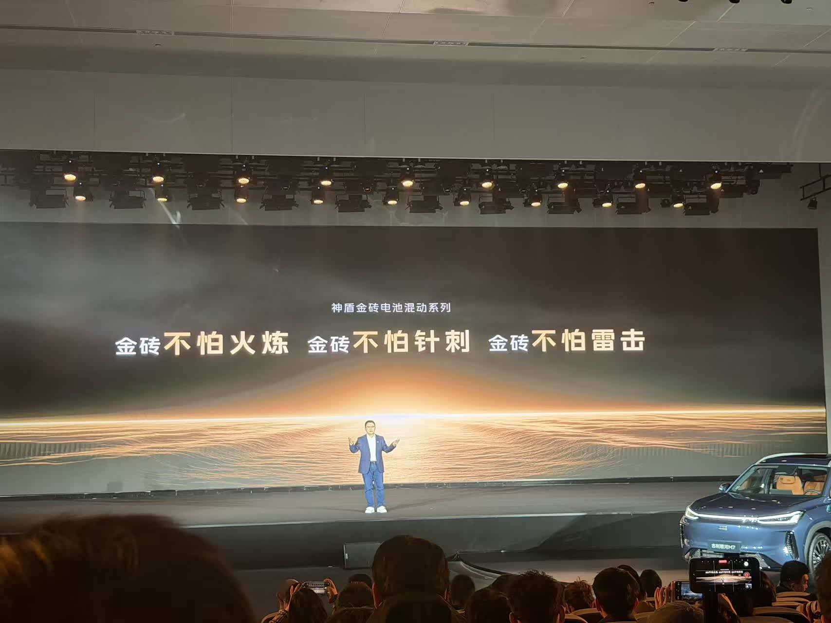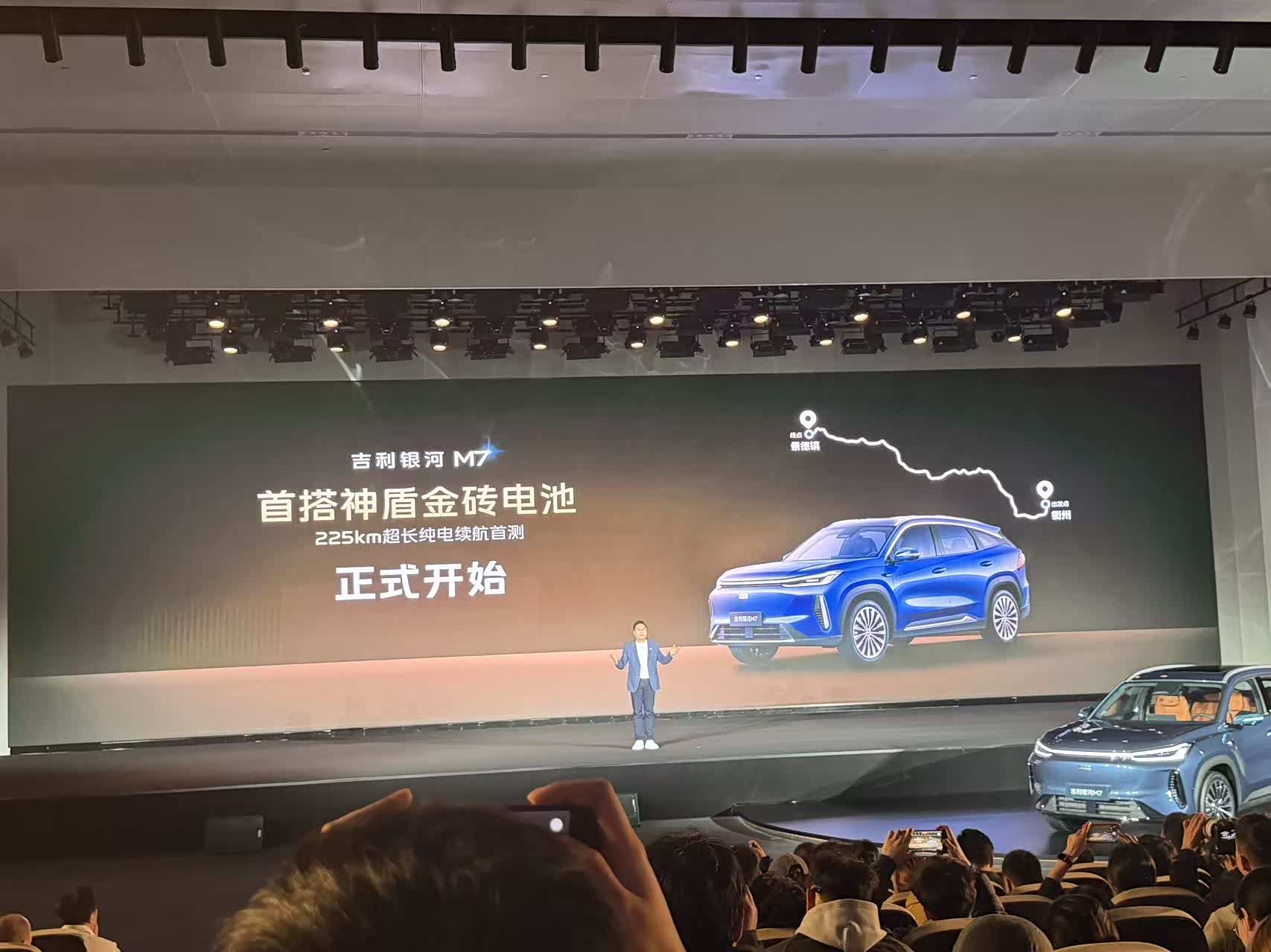 昨天去现场看了吉利银河M7技术发布会! 除了价格,主要技术信息都说了。 神盾金砖电池,续航同级最高。 纯电续航至高225km,综合1730km 最短百公里制动 麋鹿成绩81km/h 银河200万台车下线的金字招牌 全新一代千里浩瀚G-ASD H3方案 视觉感应尾门 总结一句话:银河M7要做同级最卷SUV