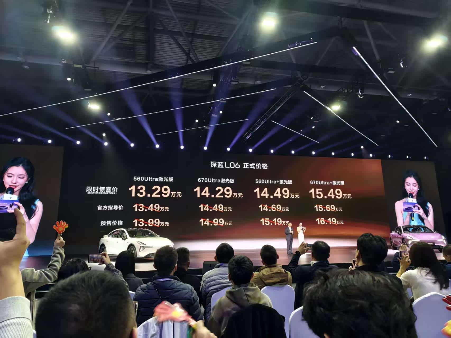 深蓝L06正式上市 价格确认 只要13.49 万起。 深蓝L06这波节奏控的可以。 颜值在线,卖点超足。 中国品牌首款量产第四代磁流变悬架,全系标配激光雷达,安兔兔跑分王,续航560km以上。 这价格,不用任何文字描述了吧。 十几万就可以跟刘浩存做车友,便宜。
