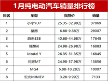 惨烈!1月纯电汽车销量大比拼,比亚迪竟无缘前十