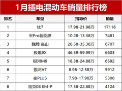 暴跌!1月插混汽车销量大比拼,仅1款车破万辆,极氪9X第四