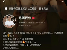 知名车评人陈震被禁言,超2400万粉丝账号一夜停摆