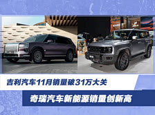吉利汽车11月销量破31万大关 奇瑞汽车新能源销量创新高