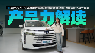 限时20.98万 双零重力座椅+后排吸顶屏 传祺E8全运版产品力解读