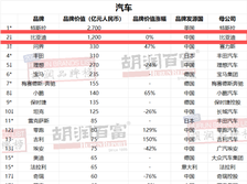 比亚迪连续四年蝉联《胡润汽车品牌榜》中国汽车品牌第一名