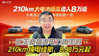 比亚迪插混电力再加码 210km纯电续航8.98万元起