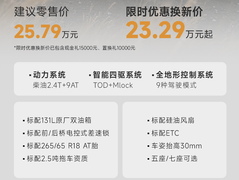 12月11日,二代哈弗H9穿越版正式上市,以23.29万起的限时优惠换新价,引发硬派越野爱好者的广泛关注。二代哈弗H9穿越版搭载131L双油箱,满油综合续航可达1400km,其搭载的高效柴油动力系统,供油雾化效果优异、燃烧效率更高,百公里油耗仅9.3L,柴油动力具备预热快、高温散热高效的优势,即便在高原低温或暴晒环境下也能稳定运行,通过整车风噪优化及柴油发动机7大降噪措施,有效降低行驶噪音,打造静谧车内环境。全系标配“三把锁”、AT越野轮胎,拥有9种驾驶模式,车姿抬高30mm,空载状态下最小离地间隙提升至235mm,还自带2.5吨牵引资质。另外还是要提一下这辆车的配置表,看着确实很诱人: 动力系统:柴油2.4T+9AT • 智能四驱系统;•全地形控制系统 TOD+Mlock / 9种驾驶模式 •标配131L原厂双油箱 •标配前/后桥电控式差速锁 • 标配265/65 R18 AT胎 • 标配2.5吨拖车资质 • 标配硅油风扇 • 标配ETC •车姿抬高30mm •五座/七座可选 我们一直都觉得哈佛H9相对看上去比较商务气息的坦克500而言更具备中国发现的感觉,这次车型的全面升级并且还是大家喜闻乐见的柴油动力,相信会让不少潜在买家欣喜。