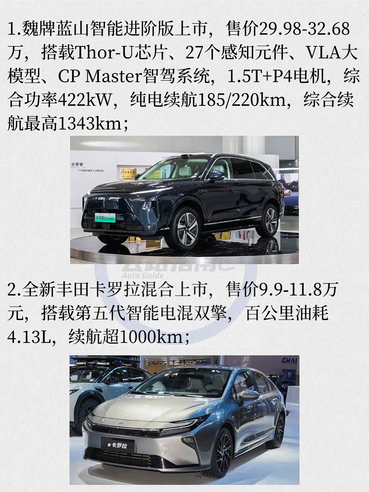 魏牌蓝山智能进阶版上市,售价29.98-32.68万,搭载Thor-U芯片、27个感知元件、VLA大模型、CP Master智驾系统,1.5T+P4电机,综合功率422kW,纯电续航185/220km,综合续航最高1343km;