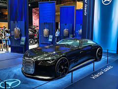 超大的盾型格栅,是未来奔驰的主审美 Vision Iconic概念车搭载L4级高度自动驾驶系统及自动泊车功能 更创新性采用太阳能涂层,可有效延长续航里程