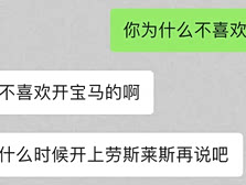 大家好,我是凉介学长。 昨天给大家说了买这辆2021款劳斯莱斯曜影爱马仕橙的心路历程以及发生的故事,大家一定很期待后面的剧情吧?今天就为大家揭晓!在上完牌之后我迫不及待的去约女神了,本以为有了曜影的加持,女神会顺利投入我的怀抱,没想到结果是这样的...... 没想到收到的是这种回复,我拼命解释她也不相信...... 没想到又是因为这样,无奈之下我只能把车开到她公司楼下去接她了!我可以用网图骗人,但不可能用假车骗人吧? 我把车开到了她的公司楼下,女神看到了我的劳斯莱斯,果然一转之前对我的态度,迫不及待的坐上了我新车的副驾,我心想还好她没污蔑我这是租来的车,不然我真的气吐血。她上了车以后还让我拍了几张照片,你给几分? 所以兄弟们,与其研究怎么与女生花里胡哨的聊天,不如好好努力赚钱,拿下你的Dream car,迎娶白富美,走向人生巅峰!加油吧,打工人!!!