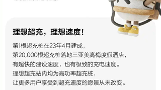 理想汽车宣布其超充桩已经达到20000根的规模,其中第2万根落地于三亚的美高梅度假酒店。从2023年4月首座理想超充站上线算起,理想汽车达成这一成就用了2年8个月;而截至12月1日,理想汽车的充电体系中一共包含3040根5C充电桩、10258根4C充电桩和6861根2C充电桩。 ​#新能源汽车#
