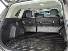 换代丰田RAV4林地版在外观设计上融入了诸多专属越野风格元素,搭配六辐式熏黑19英寸轮毂与黑色轮眉,整体视觉效果更具野性。车头配备双探照射LED灯组,可满足野外探险露营时的照明需求,单透镜LED前大灯与亮光熏黑处理的车标及车型文字相呼应,车尾点阵式LED尾灯在夜间点亮后辨识度十足。内饰方面,后备箱空间十分宽敞,尾箱垫与后排座椅均采用带有防滑纹路的耐磨防水材料,便于日常清洁及户外场景使用。座椅采用双拼色设计,表面带有通风纹理,能提升乘坐时的透气感。后排地毯同样选用防水耐磨材质,四驱版本的中央过道隆起约12厘米。后排门板上半部分为皮质包裹,下半部分采用塑料材质,既保证了触感质感,又方便日常擦拭清洁。中控台区域,中央扶手使用耐磨塑料材质,表面设有凹坑储物空间,延续了丰田经典的左右开盖设计;实体大握把换挡杆带有运动模式切换、电子驻车及手刹功能,越野氛围浓厚,驱动模式还可选择纯电模式。车内还配有内藏式小天窗,多功能实体按键三辐式方向盘搭配双屏设计,中控大屏保留了常用功能的实体旋钮,操作便捷且直观。