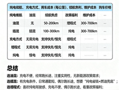 油混车型以燃油驱动为主、电机辅助,电池无法外接充电,靠发动机运转和能量回收补能。它无需充电,加油与燃油车一样便捷,城市拥堵路况油耗比同级别燃油车低30%-40%,技术成熟维护成本接近燃油车,动力平顺且无长途续航焦虑;但无纯电续航,高速油耗优势不明显,多数城市不享受新能源政策。适合无固定充电位、常跑长途、政策无特殊倾斜的用户。 插混车型支持外接充电,可纯电或油电混合行驶。日常通勤可纯电零油耗,长途可切换油混模式无焦虑,多数城市享新能源牌照和购置税减免,动力强劲平顺;但价格比同级别油混车高2-5万,纯电续航有限,车身偏重,长期不充电油耗反升。适合有固定充电位、通勤短偶尔长途、看重政策的用户。 增程式车型全程电机驱动,发动机仅发电。纯电驾驶体验平顺安静,无续航焦虑且加油方便,城市通勤成本低,享新能源政策;但高速时发动机高负荷发电导致油耗偏高,车身重影响空间,维护成本高于纯电。适合喜欢纯电驾驶感、充电不便偶尔长途的用户。 纯电车型完全依赖电池供电,用车成本极低,零排放且动力响应快,政策福利优;但长途有续航焦虑,依赖充电设施,电池存在衰减风险,低温续航缩水。适合有固定充电位、通勤为主、几乎不跑长途的用户。