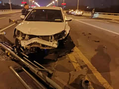 世纪大桥上一小车冲向护栏修护工人,交警飞扑了过去...