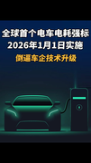 全球首个电车电耗强标 ,2026年1月1日实施 ,倒逼车企技术升级