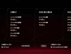 1月8日,在2026小鹏全球新品发布会上,小鹏汽车正式发布2026 款小鹏 P7+、小鹏 G7 超级增程、2026 款小鹏 G6、2026 款小鹏 G9。其中2026款小鹏P7+ 全球36国同步发布,新车有超级增程和纯电两种能源形式,超级增程有1550 Max 科技版和1550 Max 旗舰版,官方指导售价为18.68万元和19.88万元;纯电有615 Max旗舰版和725 Max 旗舰版,官方指导售价为18.68万元和19.88万元。2026款小鹏G7推出四个版本,超级增程1704 Max 科技版和1704 Max 旗舰版,官方指导售价为19.58万元和20.58万元;纯电602 Max 旗舰版和702 Max 旗舰版,官方指导售价为19.58万元和20.58万元。2026 款小鹏 G6推出纯电625 Max 科技版和625 Max 旗舰版,官方指导售价为17.68万元和18.68万元。2026 款小鹏 G9推出纯电625Max、725 Max和680 四驱Max版,官方指导售价为24.88万元、25.88万元和27.88万元。2026小鹏全球新品发布会的四款车型 Ultra和Ultra SE 版均将搭载小鹏自研第二代 VLA,也即行业首个实现L4初阶能力的物理世界大模型。 2026年小鹏汽车的第一场发布会,带来四款重磅新车型, 为全球带来颠覆性出行新体验。