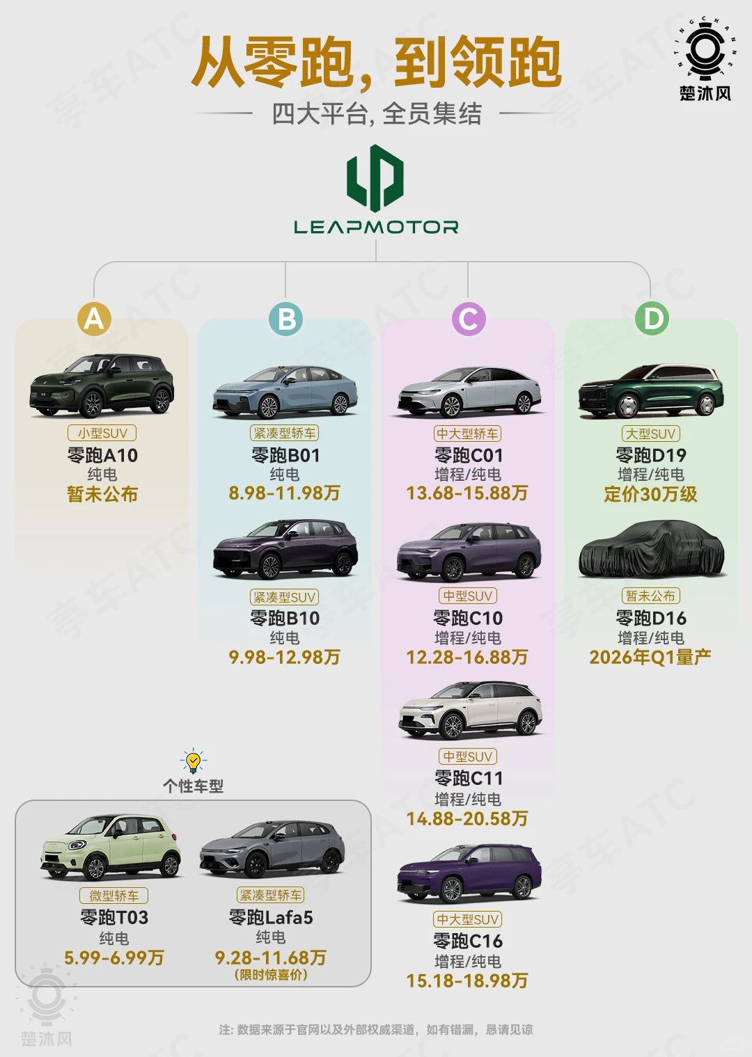 刷到零跑最新推出的两款D系列车型D19和D99,从尺寸和定位来看,这两台车估计是零跑最贵的车了。再结合之前说的ABCD矩阵,就差一台A10还没信息了,如果A10、D19、D99都是明年发布的新车,那A10估计就是明年零跑最便宜的新车了.....