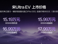 比亚迪宋Ultra EV上市,4款车型,指导价15.19万-17.99万元