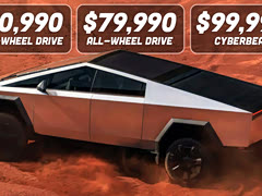 特斯拉Cybertruck在北京时间12月1日凌晨4点于美国正式开启了交付,信息总结如下 一共三个版型 单电机版,60,990刀,续航402km,动力未知 双电机版,79,990刀,续航547km,607 HP 三电机版(2025年发布),99,990刀,续航483km,845 HP 性能最好的三电机版本0-60mph能达到2.7s 三个版型电池包都是123kWh,续航最长的竟然是双电机版本,最短的是单电机版本 可以选装增程电池,可以额外增加120英里续航里程,16,000刀 支持800V充电 全车均由压铸铝合金板包覆,而且基本没有弧面,全车棱角分明,没有车漆,而且能防弹 车长达到了5.6m,但是整车尺寸比亮相时候的展车各维度小了5%左右 交付实车是有实体后视镜的,不过支持车主自行拆卸 方向盘没有使用Yoke,算是改邪归正,美国的皮卡用户估计也不太能接受Yoke。 很奇怪的是,Cybertruck拿掉了Yoke,却使用了线控转向,中位到一侧打死方向盘转动角度小于180度,意味着不论转什么弯都不用交叉手。本来是Yoke和线控转向最配,Model S搭Yoke不配线控,Cybertruck不是Yoke却使用线控,不是很能揣测其中原因。 方向盘上的按键也从触碰震动反馈改成了能按下去的实体按键 支持最大10度后轮转向 有世界上最大的前挡风雨刮