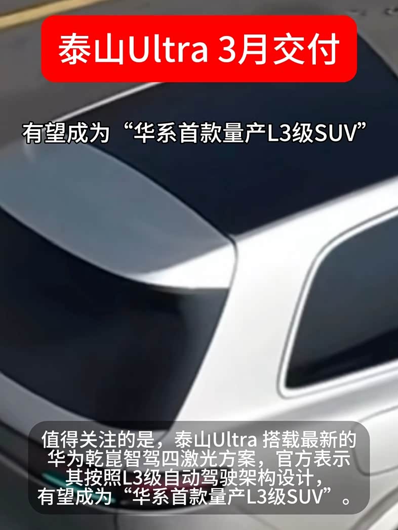 泰山Ultra3月交付,有望成为华系首款量产L3级SUV