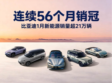 连续56个月销冠,比亚迪1月新能源销量超21万辆