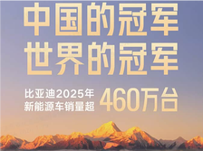 包揽中国&全球销冠!比亚迪2025年460万销量续写新能源传奇