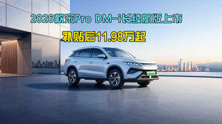 220km纯电续航,2026款宋Pro DM-i长续航版上市,补贴后11.98万起