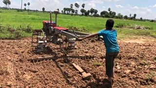拖拉机耙田,不过对于这个小伙子来说,确实有些难以驾驭
