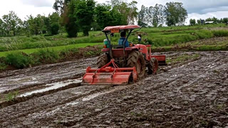 用拖拉机耙田,又细又平,而且速度很快!